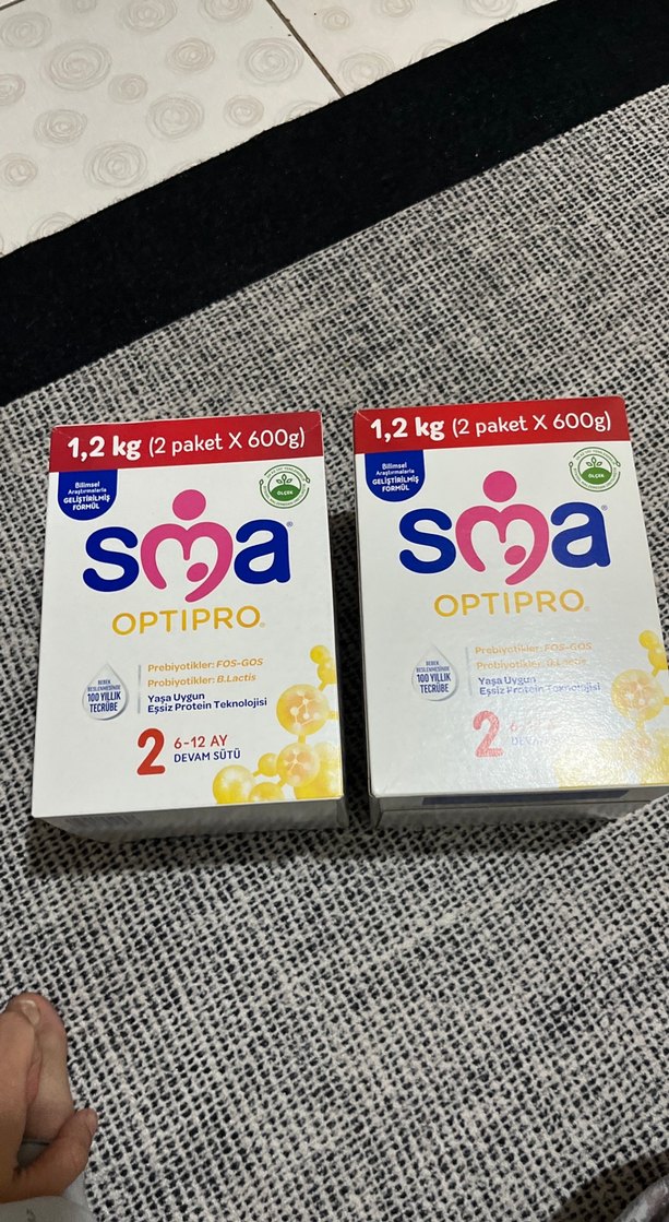 SMA Optipro 2 devam sütü, 6-12 ay bebekler için, 2 adet 600g paket halinde. Probiyotikler ve protein içerir, dengeli beslenme sağlar. 2 kutu
