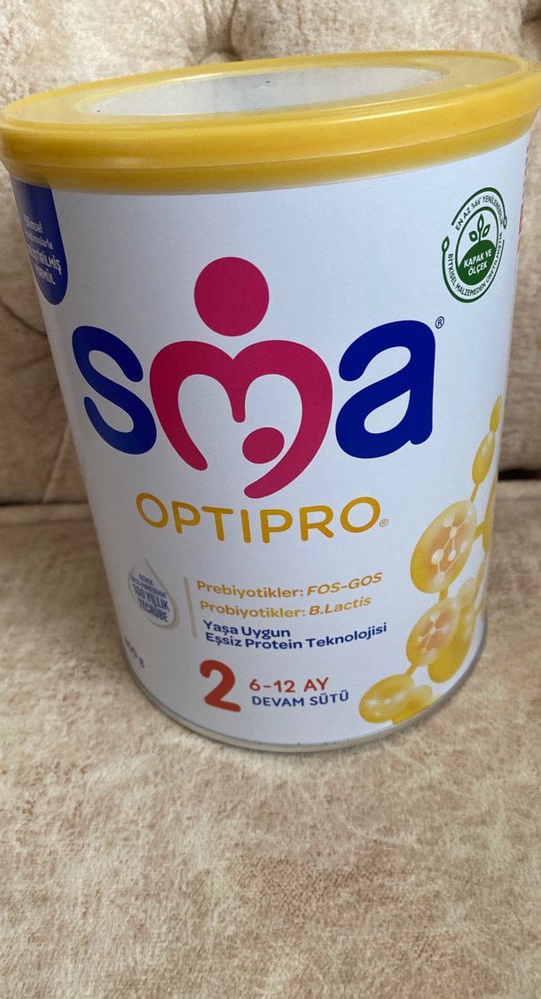 6-12 ay bebekler için SMA Optipro devam sütü, prebiyotik ve probiyotik içerir. 400g kutuda, sarı kapaklıdır.