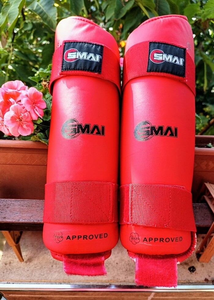 DÖVÜŞ SPORLARI İCİN-DÜNYA KARETE FEDARASYONU ONAYLI-HAFİF-ŞOK EMİCİLİ-MAKSİMUM GÜVENLİ-CIRT CIRT KAPAMA-ENJEKSİYON KALIPLI KÖPÜK-L BEDEN-PU ASTARLIDIR.KULLANIMDAN DOLAYI HAFİF AŞINMALAR MEVCUT.