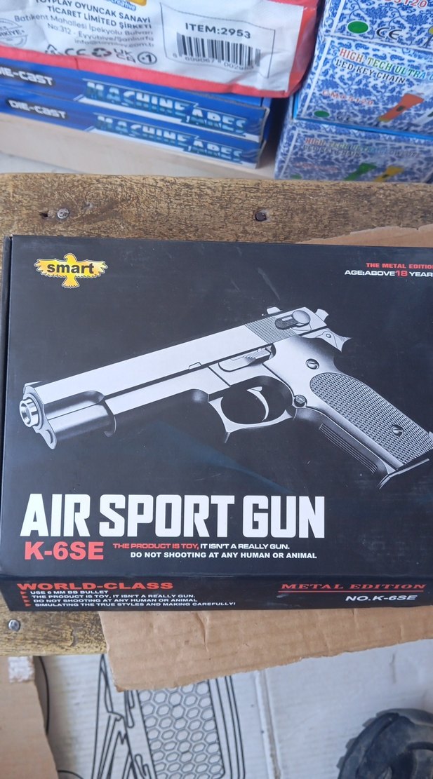Smart K-6SE gri renkte metal görünümlü oyuncak havalı tabanca. 18 yaş üzeri için uygundur. AIRSPORTGUN ve DCTIN etiketlidir.