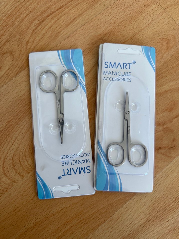 Smart marka, detaylı tırnak bakımı için tasarlanmış gri ve beyaz renklerde keskin manikür makasları seti. ✂️