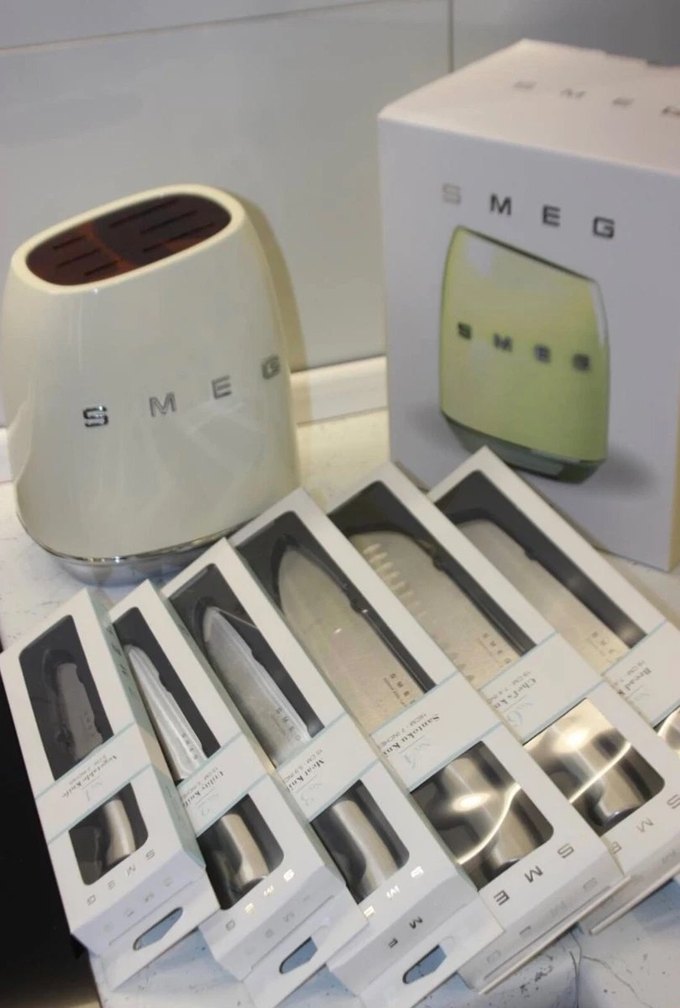 Smeg 50's Style KBSF02 Krem 7 Parça Standlı Bıçak Seti Sıfır