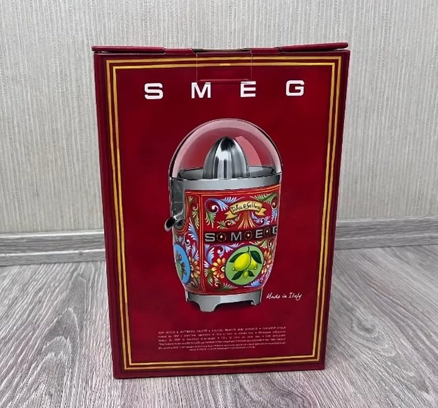 SMEG Dolce&Gabbana Tasarımlı Narenciye Sıkacağı. İtalya yapımı, detaylı desenlere sahip kırmızı tabanlı renkli SMEG narenciye sıkacağı. Fonksiyonellik ve sanatsal tasarımı bir arada sunar.