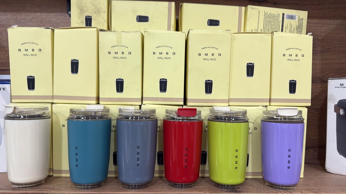 Canlı mavi, kırmızı ve yeşil renklerde Smeg termos bardaklar, içeceklerinizi sıcak tutar. Her biri kompakt ve taşınması kolaydır. ☕