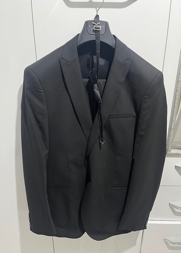 Ceket boy 75 en 50 cm . Gömlek boy 70 en 50 cm. Pantolon boy 103 cm. Güncel fiyatı 25 bin uyguna koydum. Ceket, pantolon, gömlek ve papyon