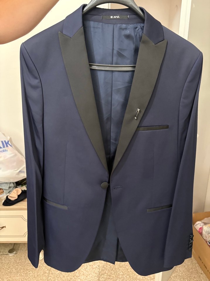 46 beden Avva marka smokin. Pantolon boyu 176 cm e kadar açtırılabilir. Hiçbir deformasyon yok. Çok şık bir takım. Smokin takım ceket,bel kuşağı ve parlak smokin pantolondan oluşmaktadır.