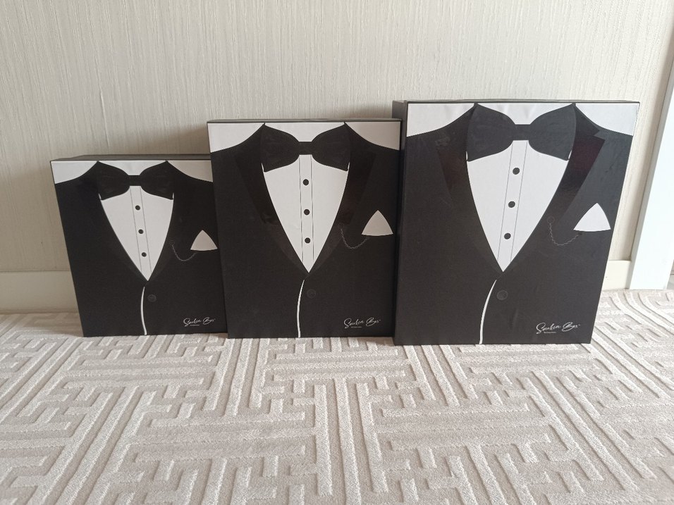 Siyah smokin model 3lu çeyiz kutusu Bir kere bohça da kullanıldı. herhangi bir sorunu yok. çeyiz kolisi sayfasindan almıştım