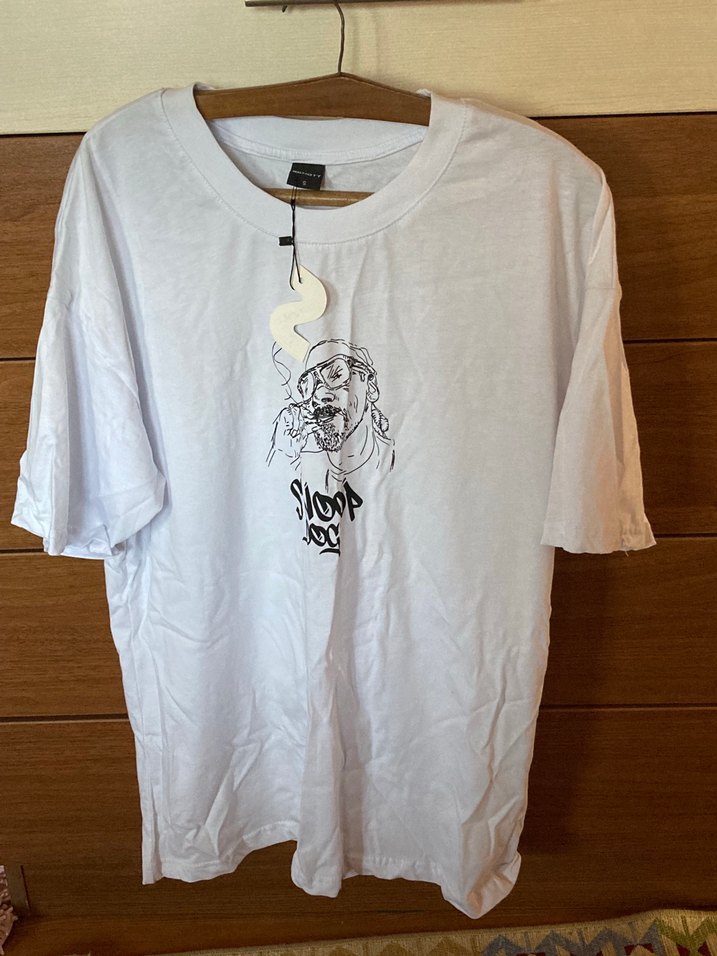 Pamuk kumaştan, beyaz renkli, bol kesim ve kısa kollu erkek tişörtü. Rock punk baskılı, yuvarlak yaka ve normal boyda, rahat sokak stili için uygun.