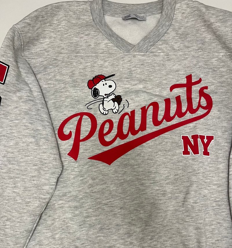 Gri pamuklu, rahat kesim ve yuvarlak yakalı sweatshirt, örgü dokulu ve Snoopy Peanuts baskılı. Spor ve rahat tarzda 1 kere kullanıldı