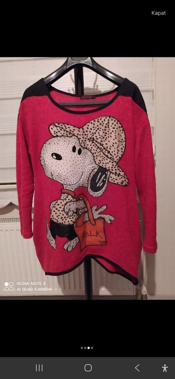 Sorunsuz. Sıfır ayarında triko kazak. XL beden. Oversize giymeyi sevenler tercih edebilir. #kazak #kirmizi #triko #snoopy