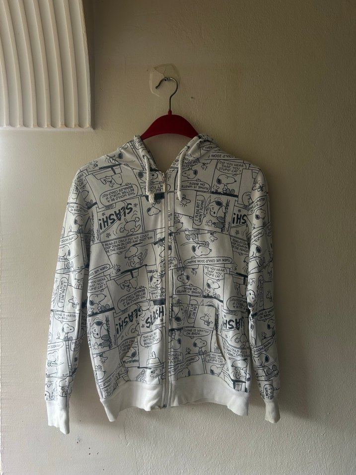 Snoppy Baskılı Kapüşonlu Fermuarlı Ceket
