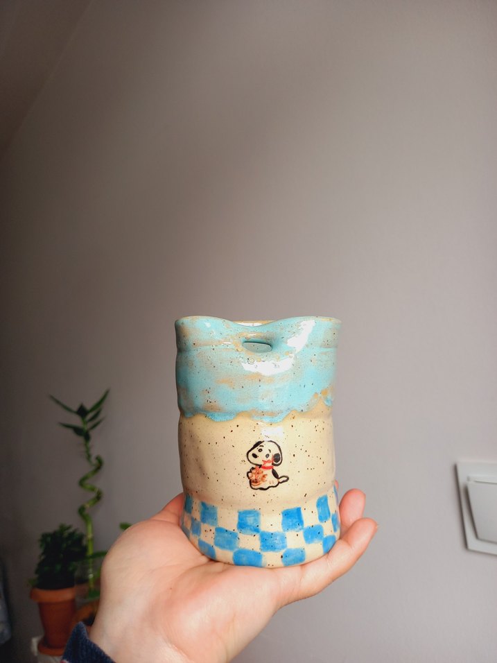 snoppy seramik kupa stoneware kupa pipetlikli kupa