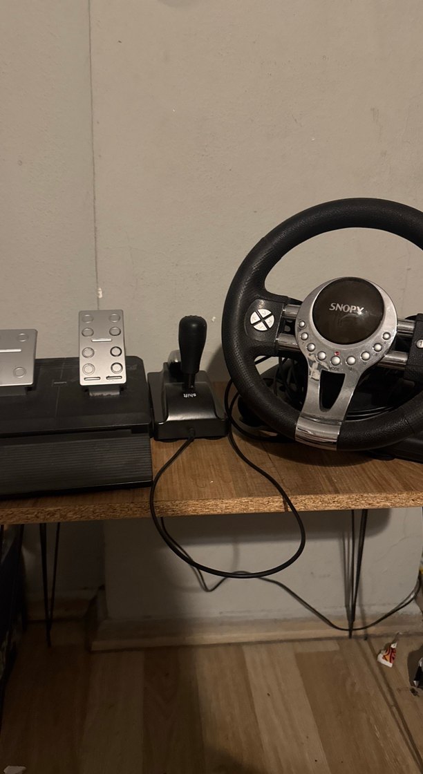 Snopy siyah oyun direksiyon seti, pedallar ve vites kolu ile gerçekçi sürüş deneyimi sunar. Dayanıklı tasarıma ve hassas kontrollere sahiptir.