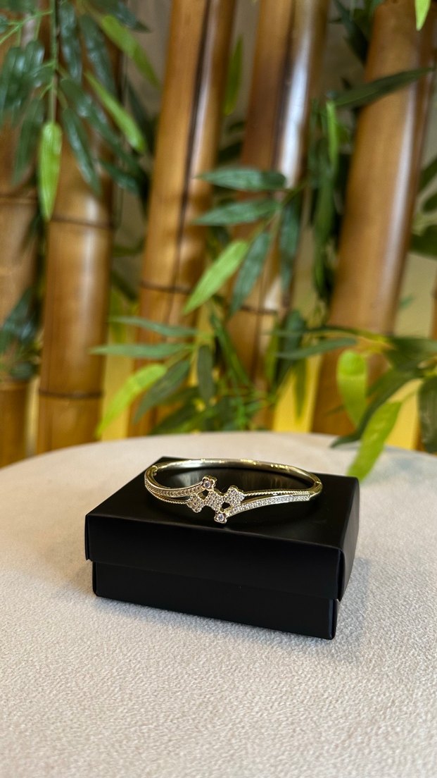 Altın renginde, kemerli ve yılan deseni detaylı bu bilezik klasik zarafetle modern stili birleştirir. Düğünler için uygundur. ✨