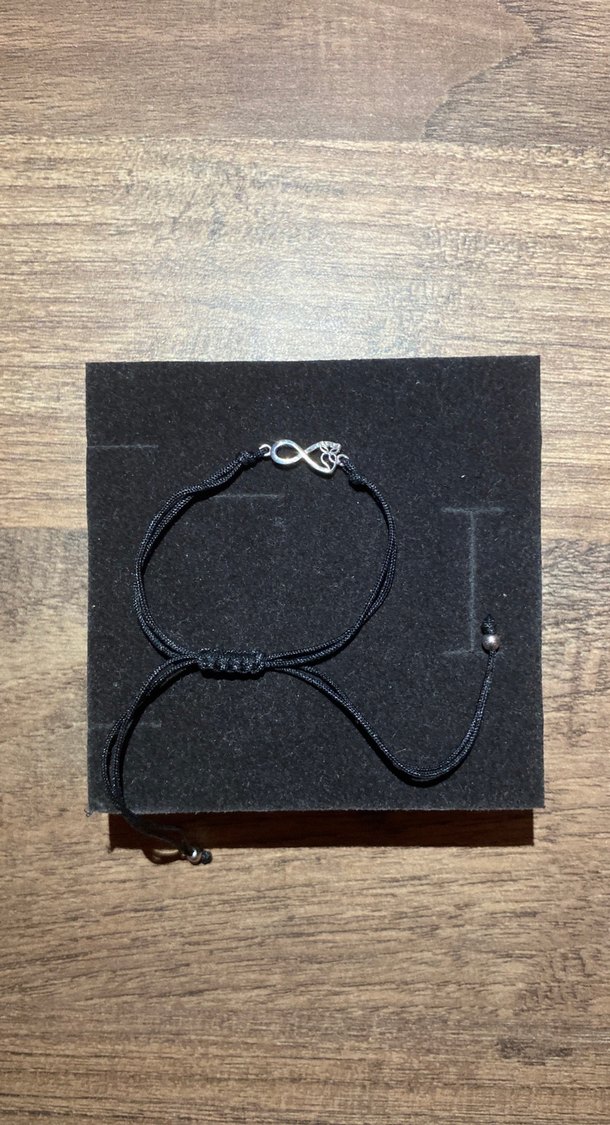 Siyah renkte, boncuk detaylı ve baskılı desenli, sade ve bohem tarzda günlük kullanıma uygun bileklik.