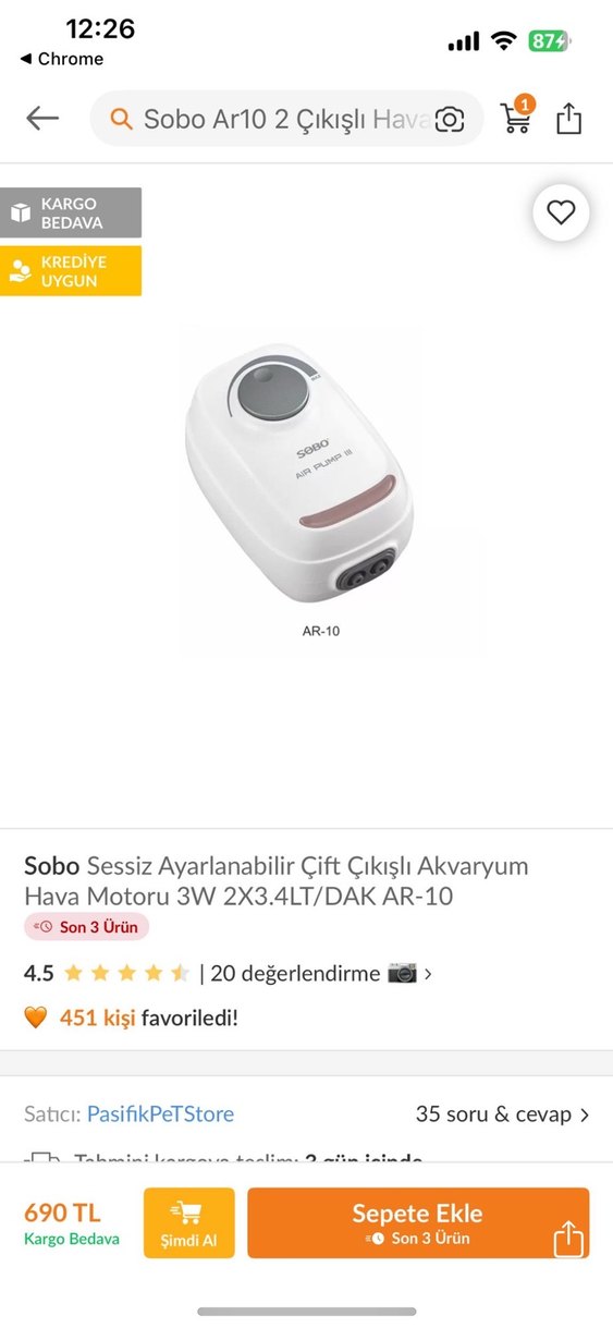 Sobo Sessiz Ayarlanabilir Çift Çıkışlı Akvaryum Hava Motoru