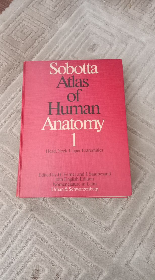Sobotta İnsan Anatomisi Atlası 1, baş, boyun ve üst ekstremiteleri Latin nomenklatürü ile içerir. Editörler H. Femer ve J. Staubesand.