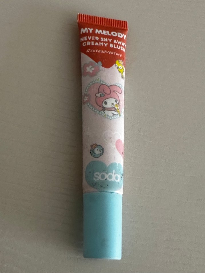 My Melody karakterli, pastel mavi kaplamalı likit allık . 'Soda' markasına ait ve yumuşak krem yapısına sahip. Numarası yazıyor bakarsını 1 kere kullanıldı