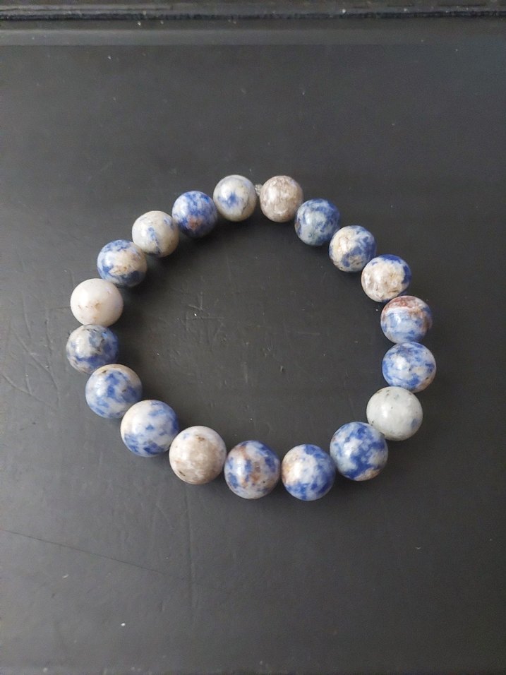 Mavi ve gri bağlama desenli boncuklardan oluşan, günlük kullanıma uygun minimalist ve bohem tarzda bileklik.Ürün dogaltaştır. Sıfır üründür.