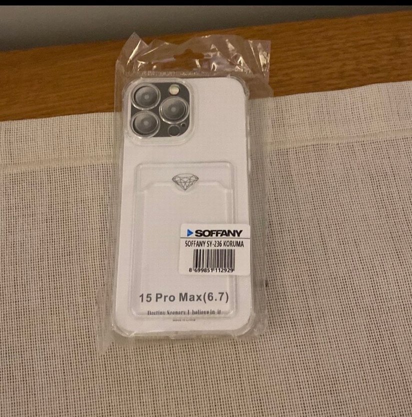 SOFFANY beyaz telefon kılıfı, 15 Pro Max (6.7) uyumlu, fermuarlı ekstra saklama bölmesi vardır. Normcore tarzda gri detaylı.
