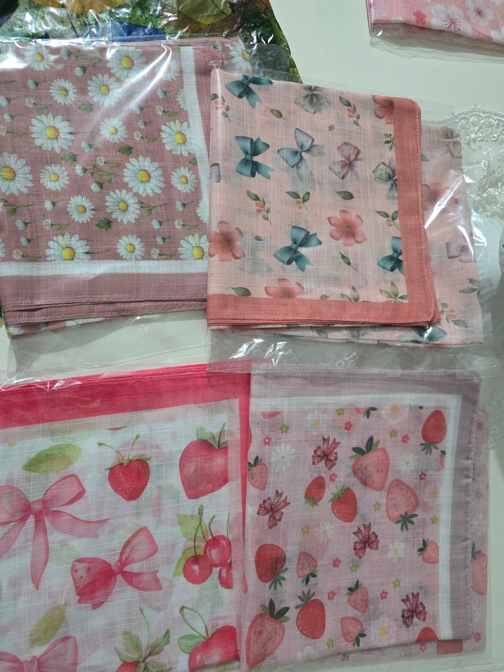 Pastel renklerde çiçek ve meyve desenli, dantel detaylı yumuşak sentetik kumaştan vintage bohem tarzda kadın fular.