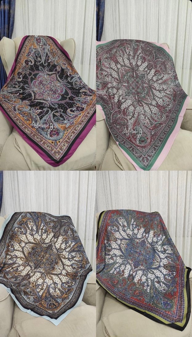 Sentetik kumaştan, dantel detaylı ve koyu, canlı çok renkli bohem tarzı kadın fularıdır.