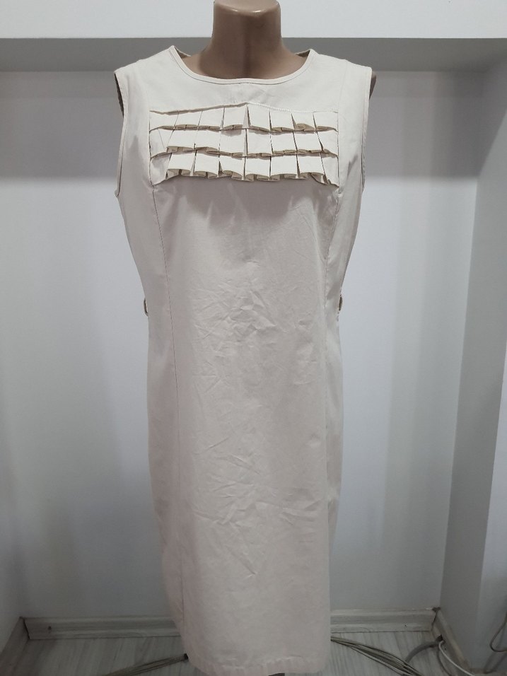 #elbise #softone pamuklu kumaş. Likralı değildir. Bel renk. Kusursuz, tertemiz. Koltukaltı en 50 cm. Bel 48 cm. Basen 53 cm. Omuz ortadan boy 90 cm.