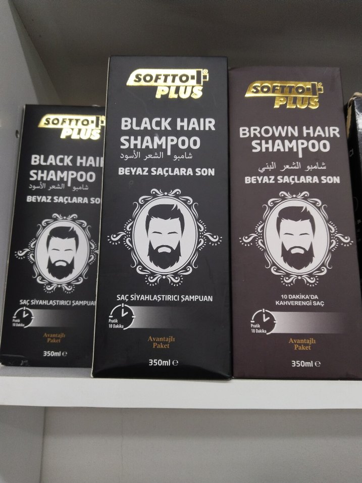 Softto Plus siyah ve kahverengi saç şampuanları, beyaz saçları yumuşak formül ile karartmaya yardımcı olur, 350ml.