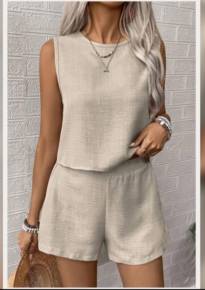 Ürün XL beden sofya keten kumaş krem rengi alt ve üst olmak üzere 2 parçadır. Şort lastiklidir esnektir. Herhangi bir özrü defosu yoktur. Paketli gönderim yapılmaktadır. Terletmez ütü gerektirmez. #kadın #giyim #kadıngiyim #ketentakım #ketenşortlutakım #kadınketentakım #ketenşort