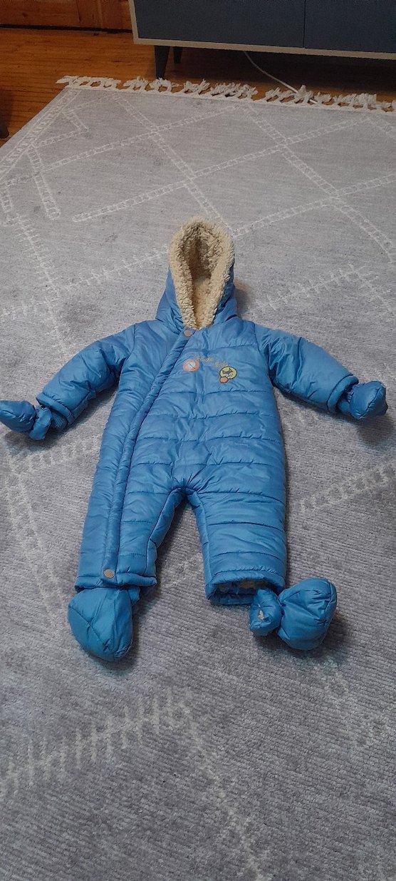 Kürklü kapüşonlu, yumuşak ve sıcak kumaştan yapılmış mavi bebek erkek tulumu. Eldiven ve patik detaylarıyla tam koruma sağlar. içi polar.Az kullanıldı.sn resim de arkasında hafif çizgi var var .ama belli olmuyor .o yüzden uygun koydum .