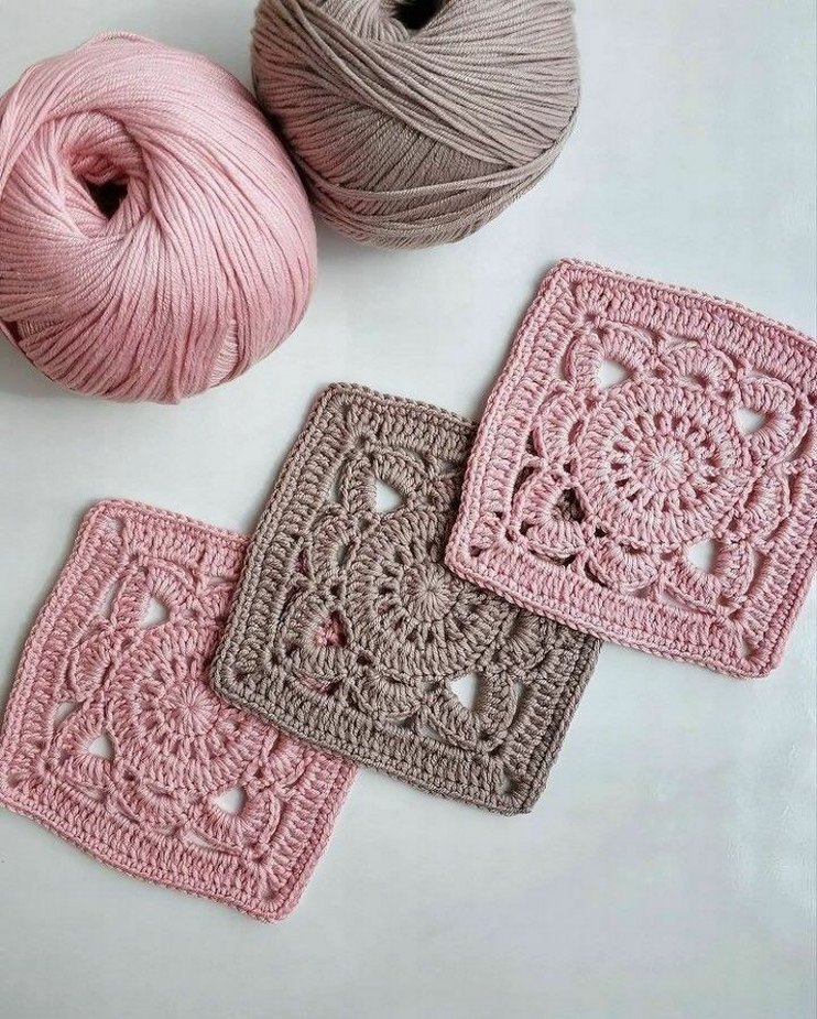 Pembe ve bej renklerde, detaylı desenlere sahip kare el örgüsü motifler, boheme tarzı el işleri için uygundur.Adet fiyatı 35 tldir. Koton ip kullanılır istenilen renklerde hazırlanır
