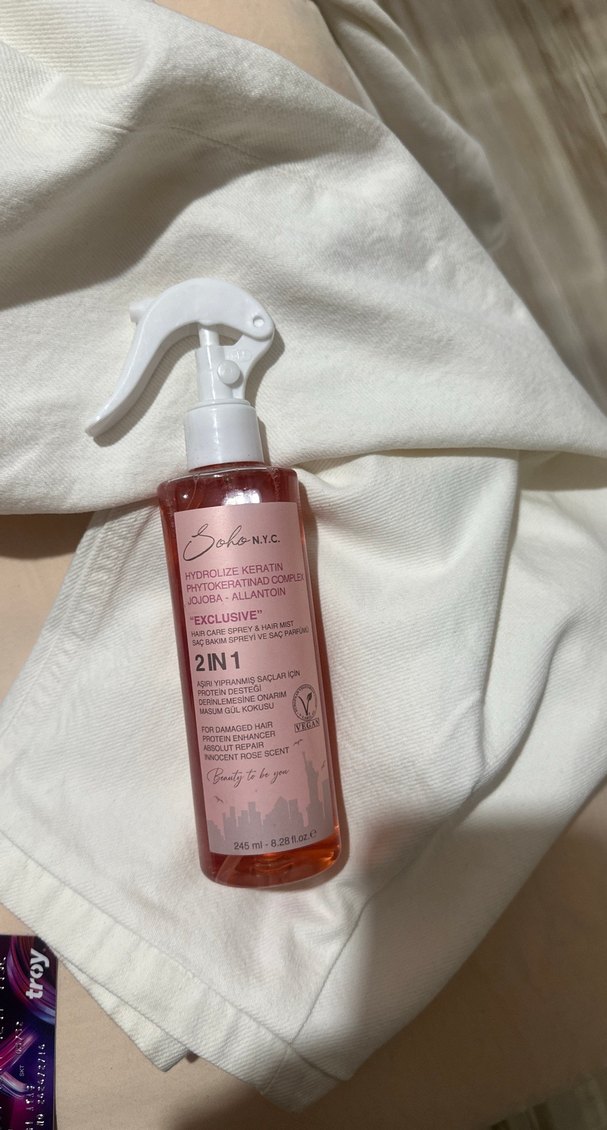 Soho NYC 2'si 1 arada tonik, hidrolize keratin, jojoba ve allantoin içerir. Hasarı onarmaya ve cildi yatıştırmaya yardımcı olur, taze bir kokuya sahiptir. Kokusu çok kalıcı kullandığım açık ürün var. Hiç kullanılmamış ürün göndereceğim.