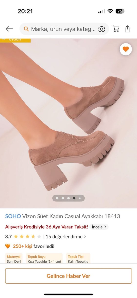 SOHO markasına ait vizon süet platform topuklu kadın ayakkabı, rahat ve şık tasarımıyla günlük kullanıma uygundur. İade sürecim geçtiği için satışta