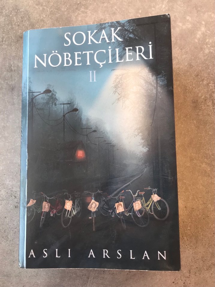 Aslı Arslan imzalı Sokak Nöbetçileri II ve posteri, sisli bir sokakta bisikletlerin olduğu gizemli bir roman.