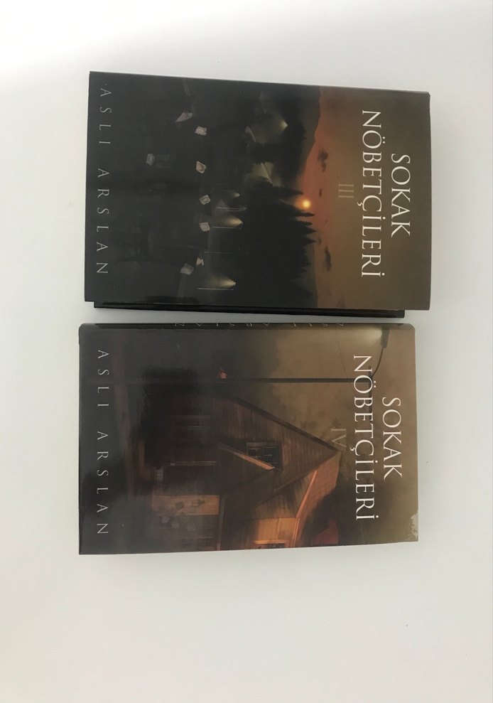 Aslı Arslan'ın 'Sokak Nöbetçileri' adlı iki ciltlik roman seti, karanlık ve etkileyici kapak tasarımıyla. Yeni hiç okunmadı.