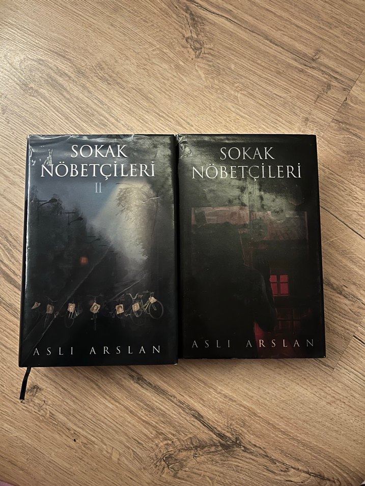 Aslı Arslan'ın yazdığı "Sokak Nöbetçileri" adlı roman serisinin iki ciltlik seti, karanlık ve atmosferik kapak tasarımıyla.