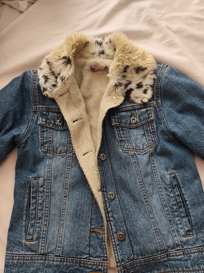 Bu dar kesim kadın kot ceket, kürklü yaka ve yumuşak iç astar ile rahatlık sağlar. Uzun kollu ve çentikli yaka detayına sahiptir.temizdir