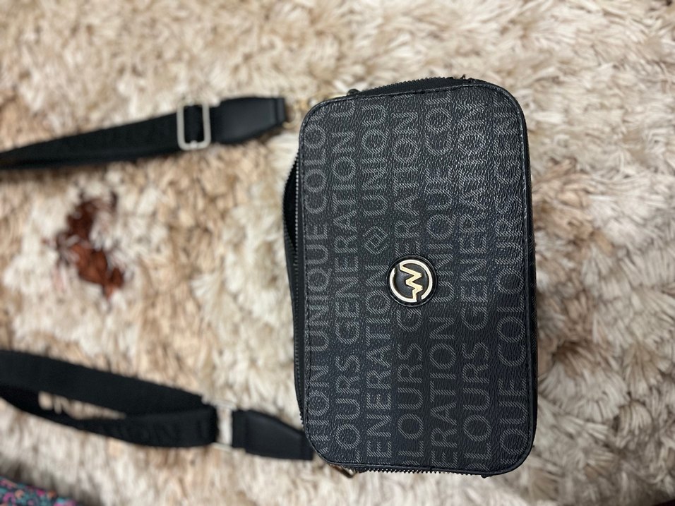 Kadınlar için siyah deri çapraz çanta, detaylı ve baskılı desene sahiptir. Günlük kullanım için uygun, rahat sokak stili ile uyumludur.