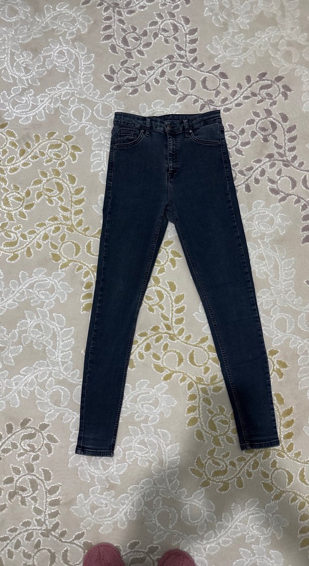 Lacivert kot kumaşından, bağlama desenli ve elastik beliyle rahat, dar kesim kot pantolon. Sokak stiline uygun. Beden ölçüsü yazmıyor bel ölçüsü fotoğrafta mevcut
