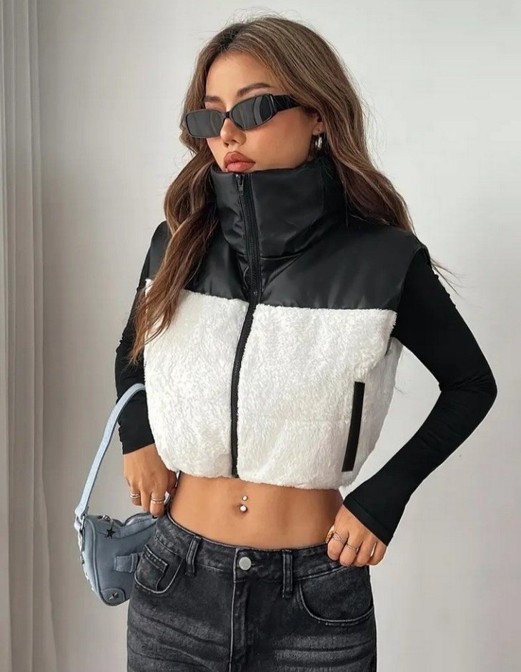 Sokak Stili Mini Kürklü Fermuarlı Yelek