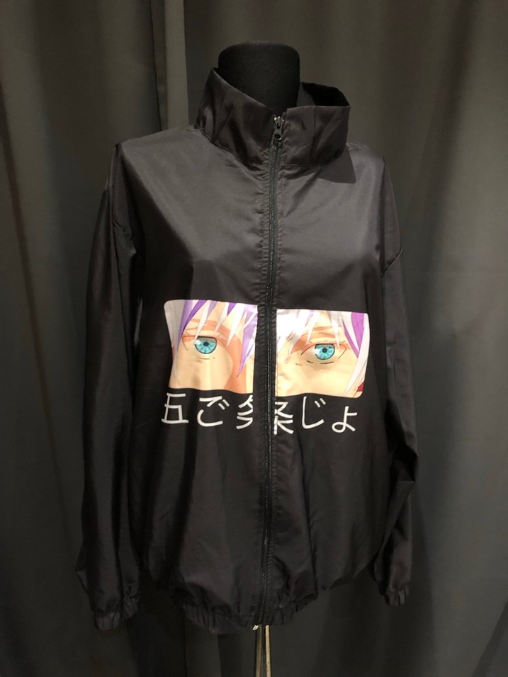 Siyah renkli, yüksek yakalı, uzun kollu ve bol kesim kadın ceket. Sentetik kumaştan yapılmış, baskılı ve önünde şeffaf detay bulunur. Midi boyda, sokak stili için uygun.