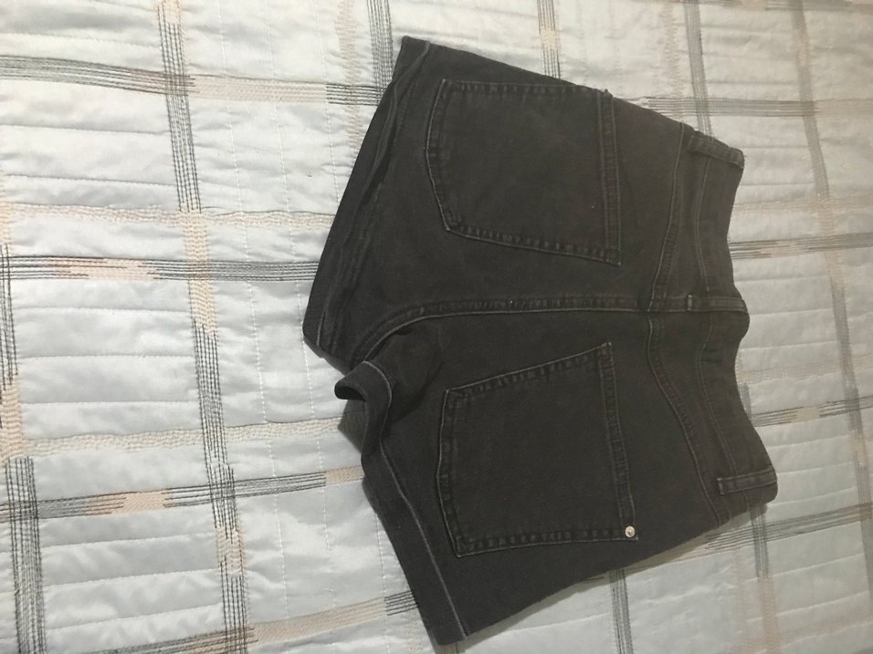 Düğmeli, siyah mini denim şort. Sokak stili ve dar kesim, günlük kullanıma uygun. Desensiz ve kısa boyda.boy 32 cm bel yüksekliği 30 cm bel genişliği 66 cm