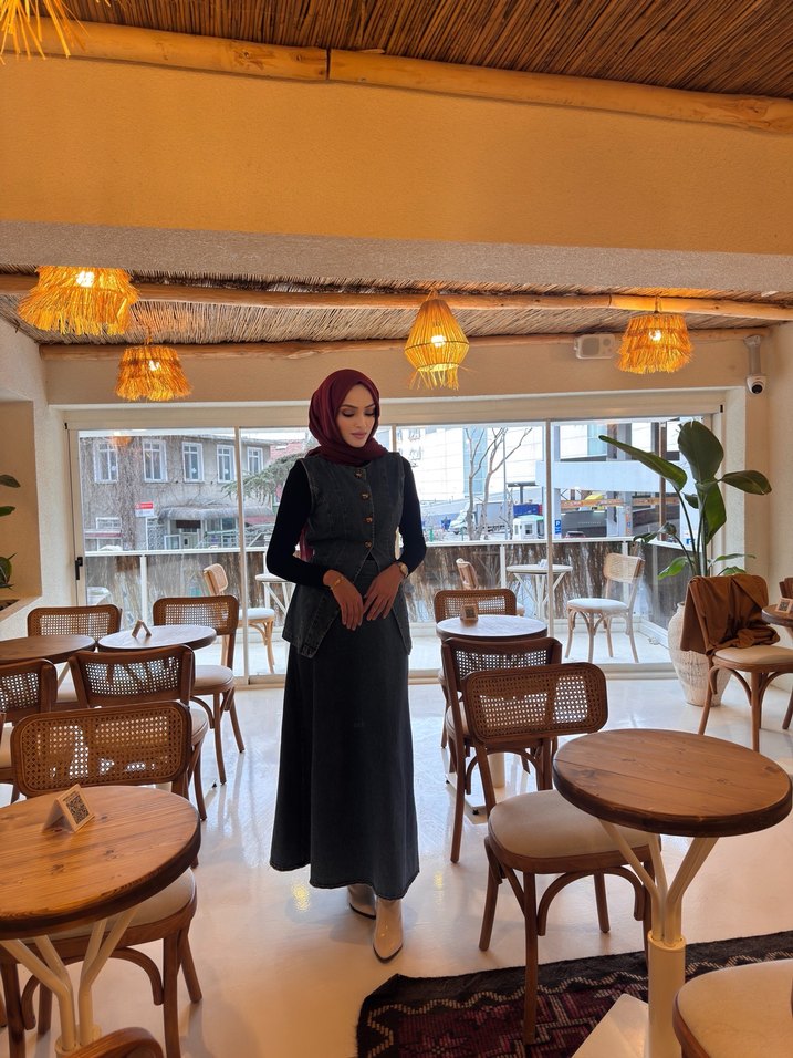 Sokak Stili Siyah Uzun Kot Elbise