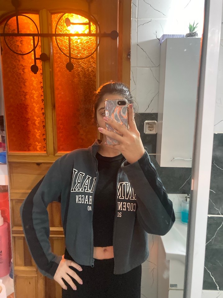 Siyah, yüksek yakalı, uzun kollu ve fitted kesim denim sweatshirt. Baskılı tasarımıyla günlük sokak stiline uygun, şık ve rahat bir parça.
