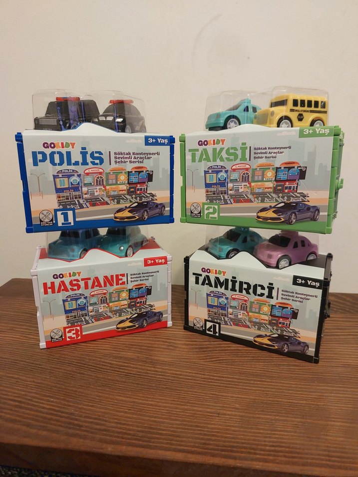 GoKidy Markasının toplamda 4 ayrı setten oluşan komple settir.Söktak Konteynerli sevimli araçlar serisidir.3 Yaş ve üzeri uygundur.Her koyteyner ayrı bir şehir ve her konteynere özel 2 adet araçları ile birliktedir.4 Konteyner toplam 8 araç ve her bir şehire özel aksesuarları ile birliktedir.Konteynerler açıldıkca her biri ayrı bir işletmeye dönüşmektedir.Polis,Hastane,Tamirci ve Taksi Durağı olarak 4 ayrı şehir bloklarından oluşmakradır.Çocukların el becerilerini ve hayal gücünü geliştiren kaliteli bir settir.Orijinal ambalajında ve hiç açılmamıştır.Özenle paketlenecektir.Diğer ilânlarımı incelemeyi unutmayınız.