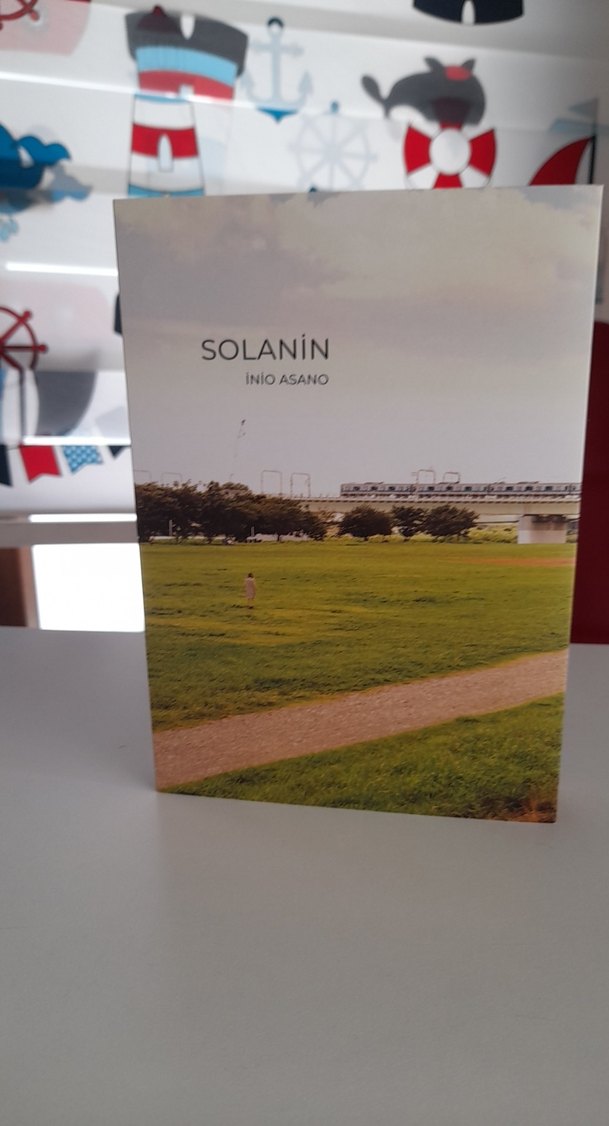 Inio Asano'nun Solanin adlı şiir kitabı, günlük yaşam sahneleriyle duygusal ve düşündürücü temalar içerir. arkasında fotoğrqftaki gibi küçük bir leke var