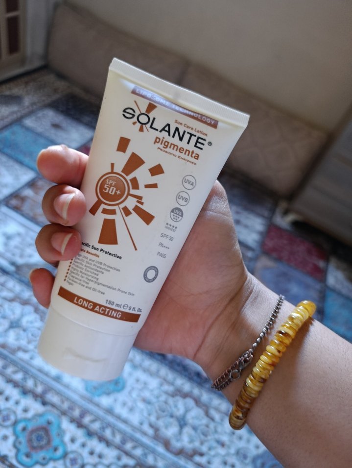 Solante Pigmenta güneş koruyucu krem, SPF 50+ ile uzun süreli UVA ve UVB koruması sağlar, ciltte pigment oluşumunu önlemeye yardımcı olur. Geniş spektrumlu ve hassas ciltlere uygundur. ☀️