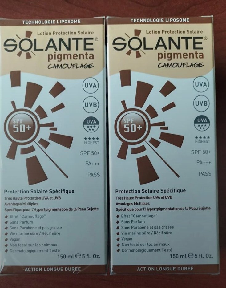 ÜRÜN SIFIRDIR STOK YAPTIĞIM İÇİN SATIYORUM Solante Pigmenta SPF 50+ losyon, yüksek UVA ve UVB koruması sağlar. Uzun süre etkili liposom teknolojisi, parfümsüz ve yağsızdır. Dermatolojik olarak test edilmiştir.