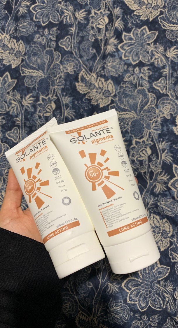 Solante Pigmenta SPF 50+ güneş kremi, geniş spektrumlu UVA ve UVB koruması sağlar. Hassas cildi güneşin zararlı etkilerinden uzun süre korur. ☀️ ikili bu fiyataa paketleri yıpranmıştı o yüzden çıkardım hiç kullanılmadı zaten alındığında fark edilir fazladan stoklamıştım ama kulmanmıyorum bana olmuyor açıldıktan sonra 1 yıl skt var yani geçmemiş