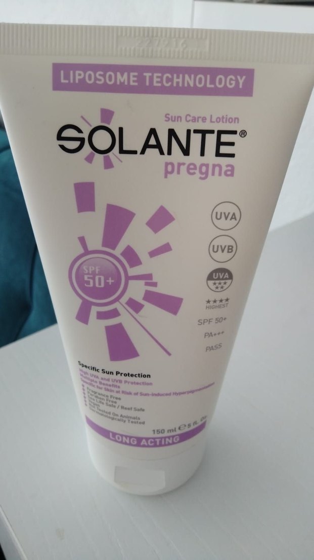 Sadece 2 kez kullandım. Tenim hassas olduğu için yüzüme iyi gelmedi. Kutu dolu şekilde duruyor. Solante Pregna güneş koruyucu losyon, SPF 50+ ve liposome teknolojisi ile uzun süreli koruma sağlar. UVA ve UVB ışınlarına karşı etkili koruma sunar.